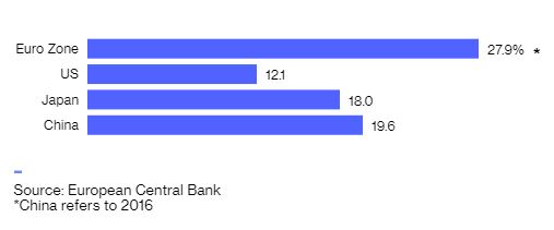 σύγκριση με το 12,1% για τις ΗΠΑ, σύμφωνα με την ΕΚΤ. Η νομισματική