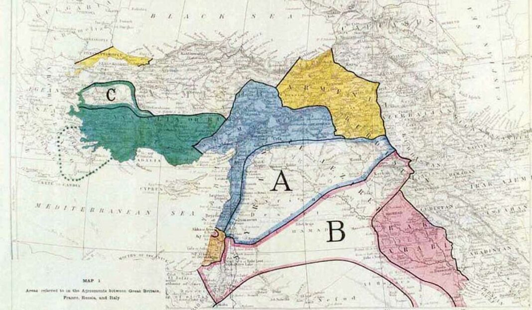 Η συμφωνία διαμελισμού το 1916, γνωστή και ως Συμφωνία Σάικς-Πικό-Σαζόνωφ: 1) Μεταβίβαζε τις οθωμανικές επαρχίες Ερζερούμ, Τραπεζούντας, Βαν και Μπιτλίς στη Ρωσία. 2) Η Γαλλία αποκτούσε τον Λίβανο, την παραλιακή Συρία, τα Αδανα, την Κιλικία και τη Μοσούλη. 3) Η Βρετανία τη Βαγδάτη και τη Μεσοποταμία, καθώς και τα μεσογειακά λιμάνια Χάιφα και Ακρα. Μέσα σε αυτό το ιστορικό πλαίσιο η εύρεση νέων ενεργειακών κοιτασμάτων στην ανατολική Μεσόγειο δεν αποκλείει την άμεση εφαρμογή του δόγματος Ramsfeld/Gebronsky για την Τουρκία με σκοπό η Αμερική να μην αποκλειστεί εκ νέου από τη συμφωνία νομής των ενεργειακών κοιτασμάτων. Βεβαίως, η πολιτική κατάσταση σήμερα είναι συνθετότερη σε σχέση με το παρελθόν.