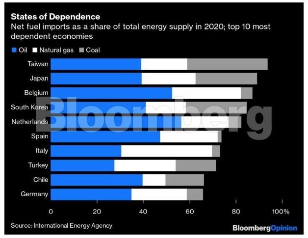 Τα κοινά τους στοιχεία κρύβουν όμως και μια κραυγαλέα διαφορά. Οι ΗΠΑ - και, κατ' επέκταση, η Βόρεια Αμερική - είναι ουσιαστικά αυτάρκεις όσον αφορά την προμήθεια καυσίμων. Ο δε κατάλογος των 10 χωρών με τη μεγαλύτερη εξάρτηση από τις εισαγωγές καυσίμων ως μερίδιο επί των συνολικών ενεργειακών αναγκών τους είναι γεμάτος με τους μεγαλύτερους συμμάχους της Αμερικής πέρα από τον Ατλαντικό και τον Ειρηνικό.