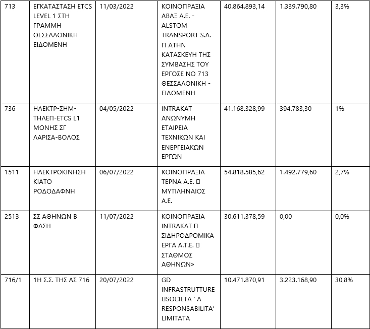 Από τα έργα αυτά, το επίμαχο έργο αναφέρεται στη σύμβαση 717 "Ανάταξη και Αναβάθμιση του συστήματος Σηματοδότησης - Τηλεδιοίκησης και Αντικατάστασης 70 Αλλαγών Τροχιάς σε Εντοπισμένα Τμήματα του Άξονα Αθήνα – Θεσσαλονίκη – Προμαχώνας", ύψους 41,3 εκατ., με αναδόχους την Τομή και την Alstom και τη συμπληρωματική σύμβαση 717/1 "Ανάταξη Σηματοδότησης – Τηλεδιοίκησης Αθήνα Θεσσαλονίκη Προμαχώνας", με τους ίδιους αναδόχους και ύψους, 13,2 εκατ.