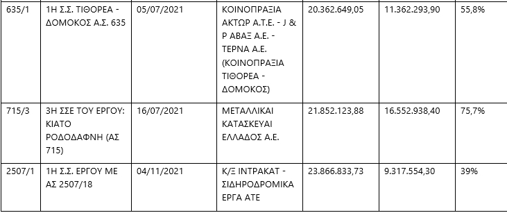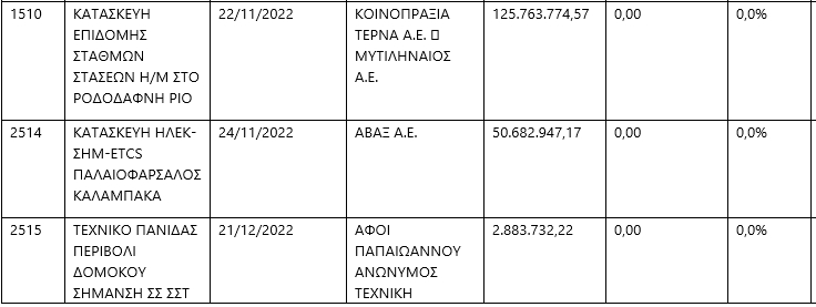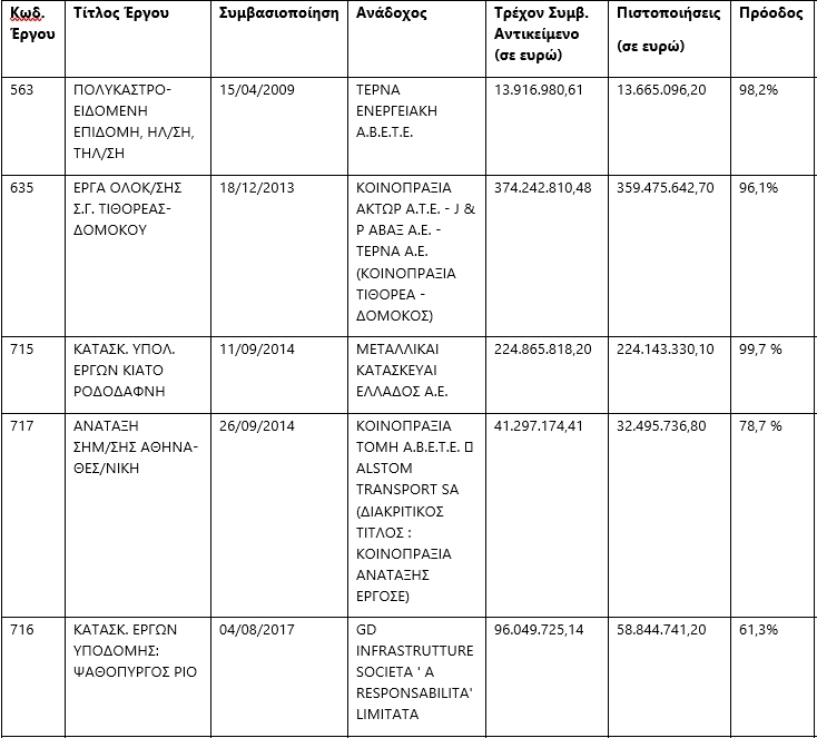 Το Τρέχον Συμβασιοποιημένο Αντικείμενο, αφορά το συνολικό ύψος της σύμβασης, οι Πιστοποιήσεις αφορούν το ύψος των πιστοποιημένων εργασιών, ενώ στο τέλος το ποσοστό 0% αναφέρεται σε έργα που έχουν συμβασιοποιηθεί το τελευταίο διάστημα.