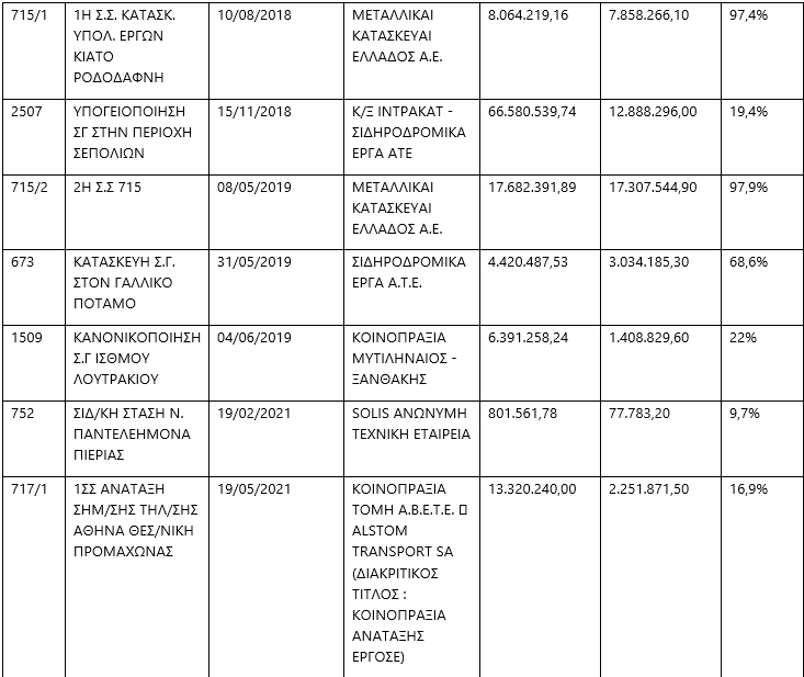 Σύμφωνα με την επίσημη ιστοσελίδα της ΕΡΓΟΣΕ, η πρώτη σύμβαση υπογράφτηκε το 2014 και η δεύτερη το 2021, έχοντας υλοποιηθεί σήμερα στο 78,7% και στο 16,9% αντίστοιχα.